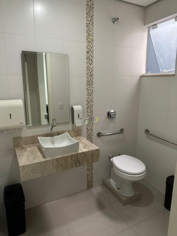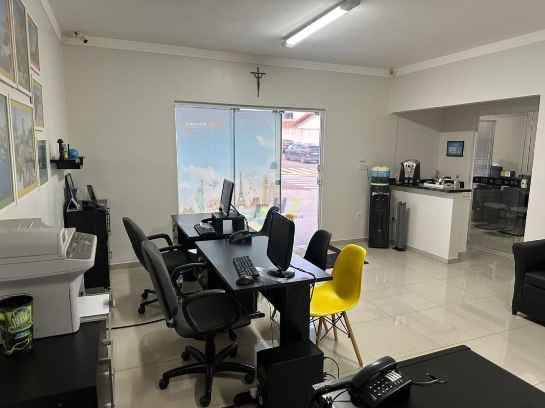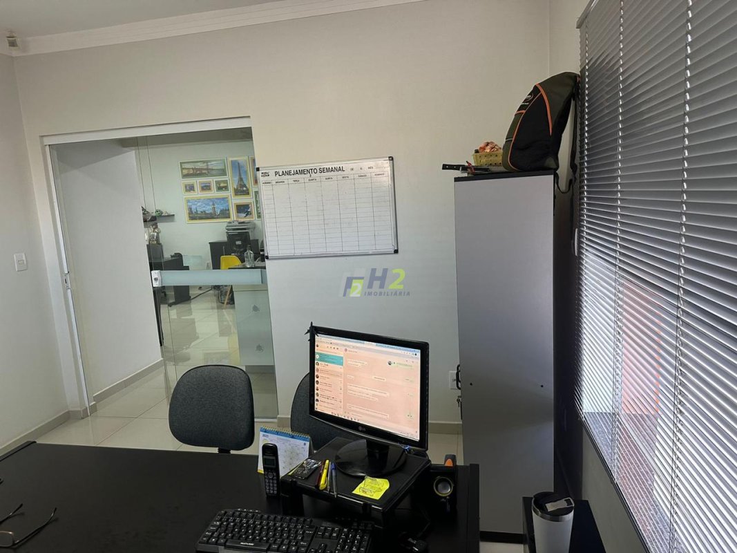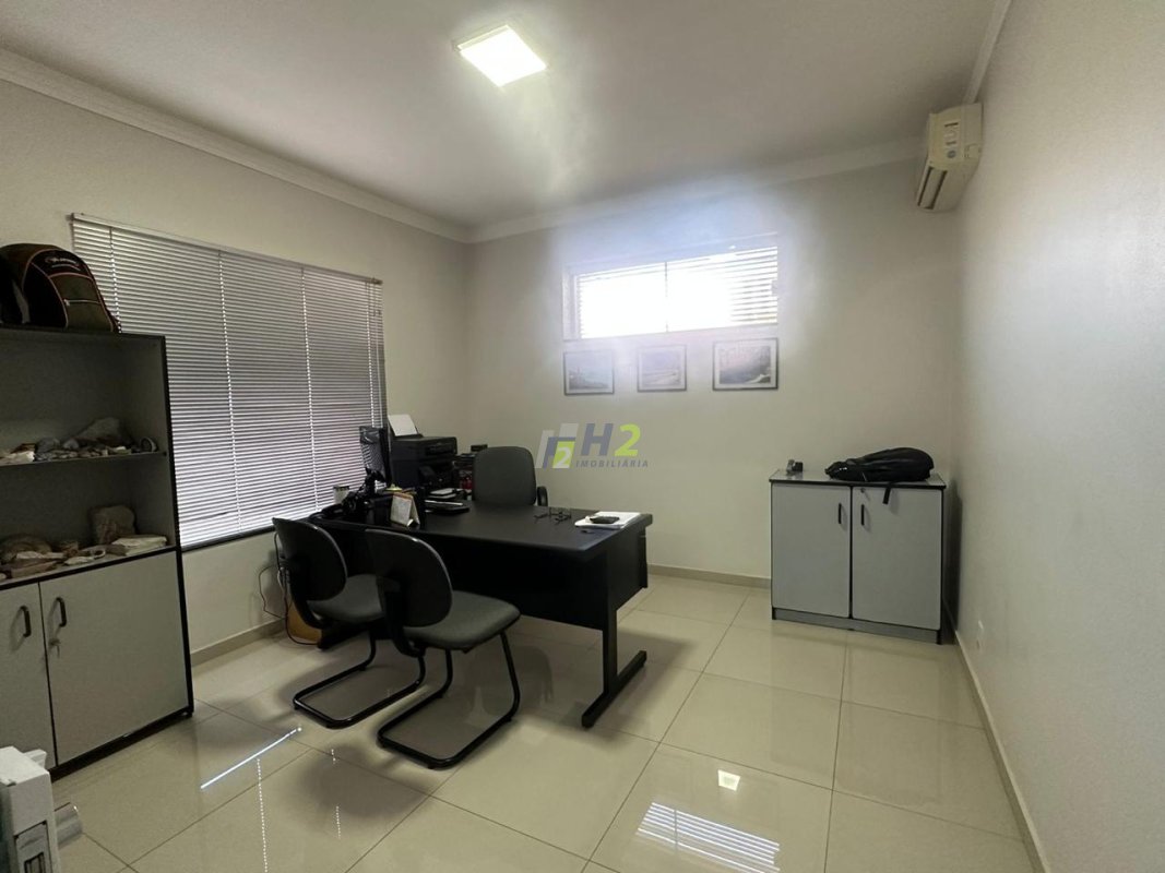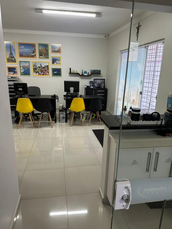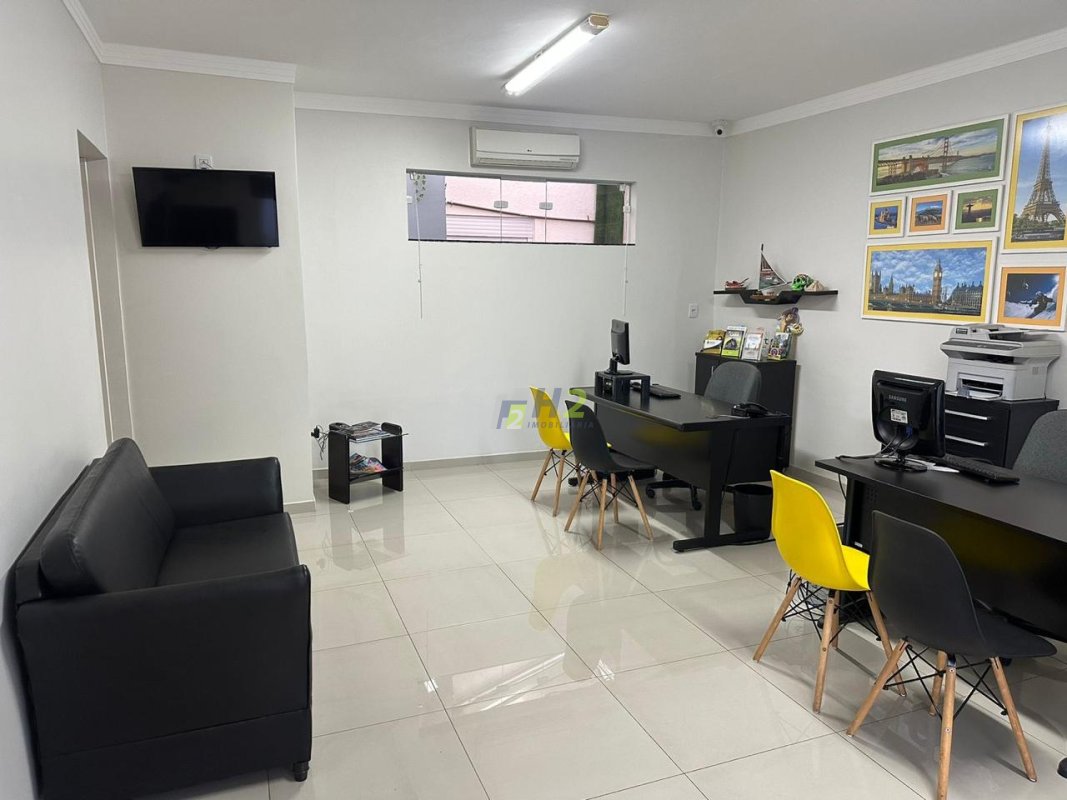 Parte comercial do imóvel conta com sala grande e uma sala pequena, lavabo, copa, e área de serviço separada.