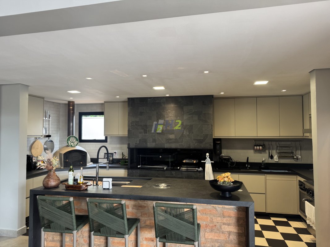 Além disso, o casa em condomínio possui lareira, espaço gourmet, amplo quintal, escritório e espaço jardinado.